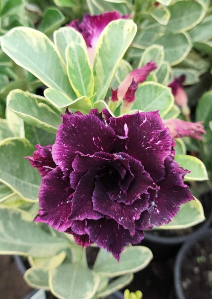 A Rosa do Deserto VARIEGATA CÉU ESTRELADO é uma verdadeira joia para os amantes de plantas! Em nossa pré-venda , você poderá garantir essa beleza única, que traz cores e formas surpreendentes.